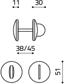 Alexandra is a privacy Snib & Release on concave profile roses. Used for WC type doors where you want to lock a door and still have emergency access from the outside. Suitable for use with locks and throw bolts.. Available in the same collection is the Alexandra coat hook, the Alexandra pull handle and the Alexandra door handle designed by F.A. Porsche in 1989.
