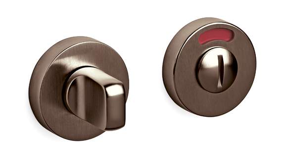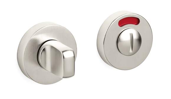 VERONA is an indicating privacy Snib & Release on a standard rose. Used for WC type doors where you want to lock a door and still have emergency access from the outside. Suitable for use with locks and throw bolts. Can be used in conjunction with the corresponding Verona range or mix and match.