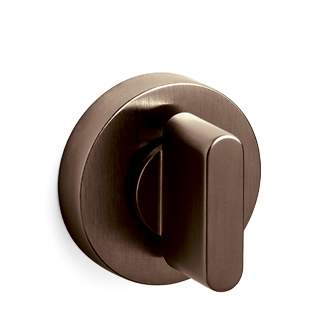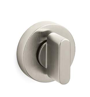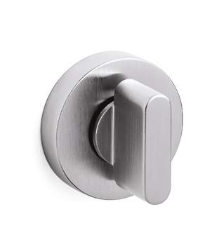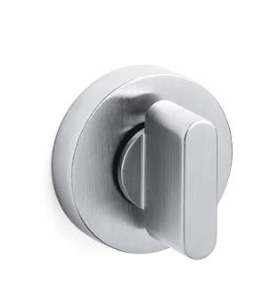 Link is a handle with standard round rosette. Available in the same collection: a low rosette, offset pull handle, pull-up handle, and door knob designed by Piero Lissoni nel 2006