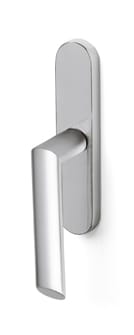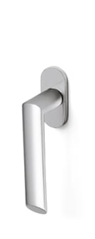 At first glance, the handle seems ultra elementary. An element with an elliptical section comes forward from a circular rose. At one fourth of the length of the handle, it bends by 90 degrees to form the grip, maintaining its elliptical section. The handle ends sliced neatly by 45 degrees, revealing a cut with a circular shape.