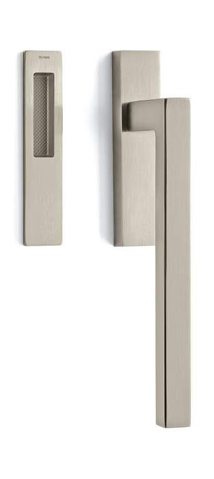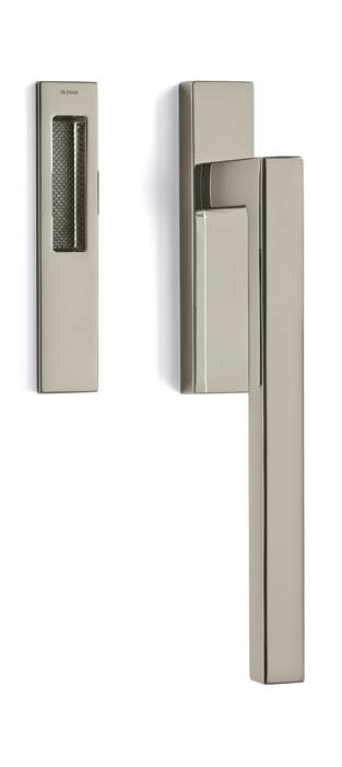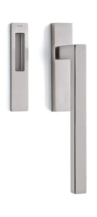 Planet Q is a pull-up handle. This collection is available in either a fixed B2B slider, 3 point B2B turn pull up handle, short pull-up handle, the straight pull handle, the offset door knobs and the door lever. All of which are designed by Luca Casini in 2010.